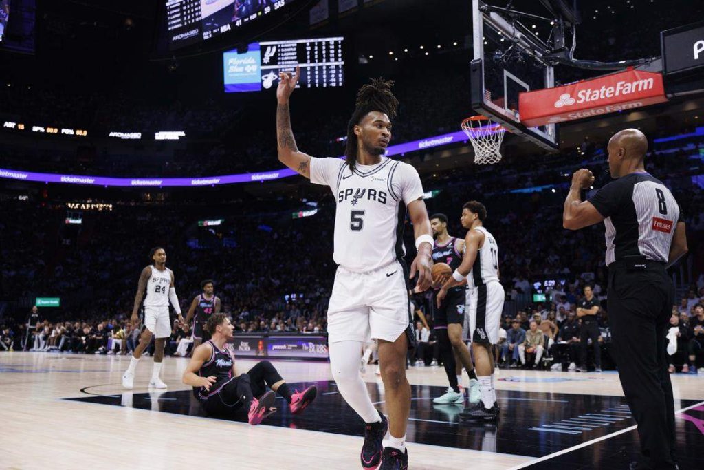 They picked up D’Aaron Fox last season and have Harrison Barnes on the team for veteran presence. The team has “leveled-up” to compete for titles. The players didn’t just depend on Wemby to carry them on offense. They shot lights out. Dylan Harper had a moment in the first half when he bullied Tyler Herro to the hoop for a layup. Harper turned around, looked at Herro and made a gesture to him that he was “too small.”